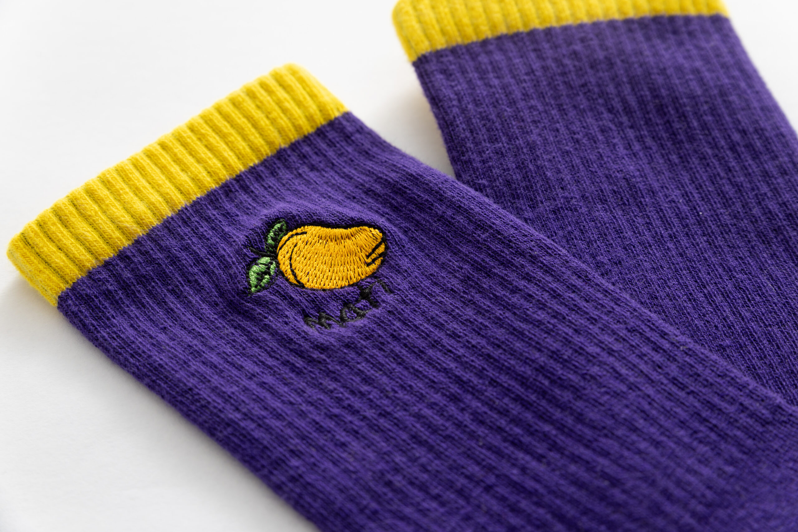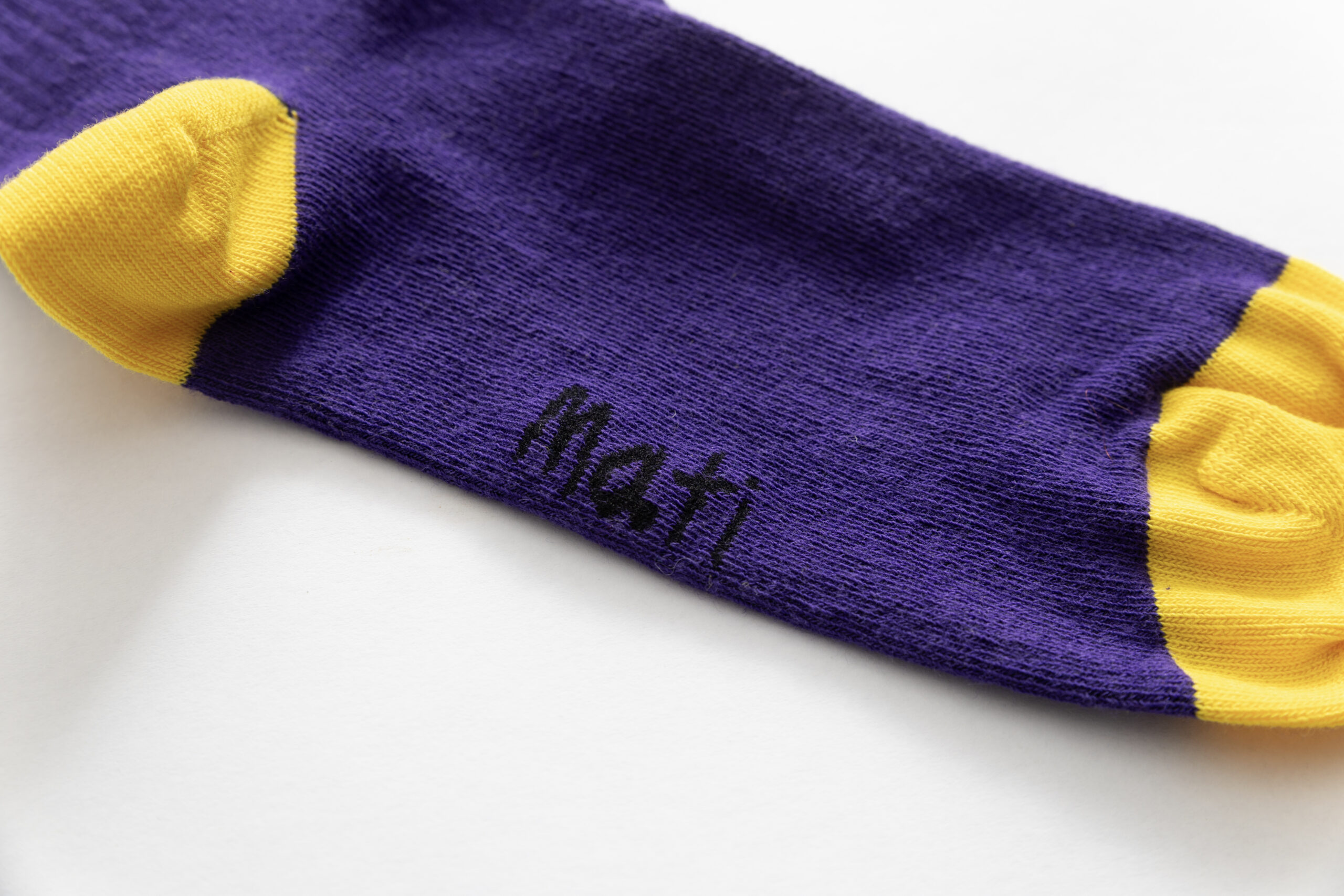 A base da marca, bordada, agora em forma de meia. A Mati Original traz o logótipo da marca como elemento principal do design uma peça simples, mas cheia de identidade.